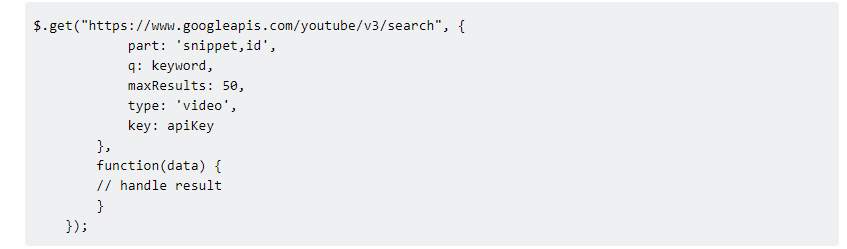 Ở đây chúng tôi chỉ sử dụng các tham số cơ bản thôi: maxResult – giới hạn kết quả tìm kiếm(để tránh request search quá lâu), type – xác định loại video cần tìm kiếm. Và còn khá nhiều tham số nữa, bạn có thể tham khảo tại đây.